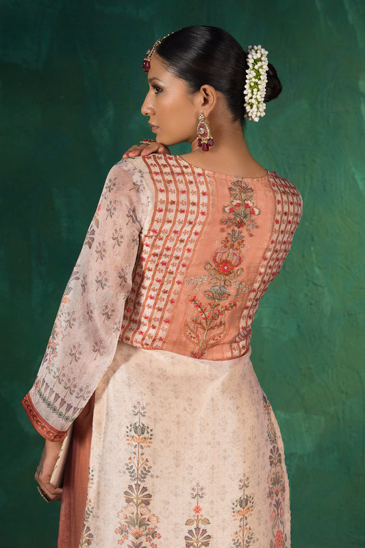 Ivory Floral Hand Painted Organza Kurta Set
