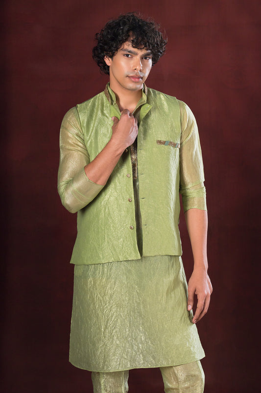 Crimson Red Designer Kurta Pajama Paired with Floral Nehru Jacket