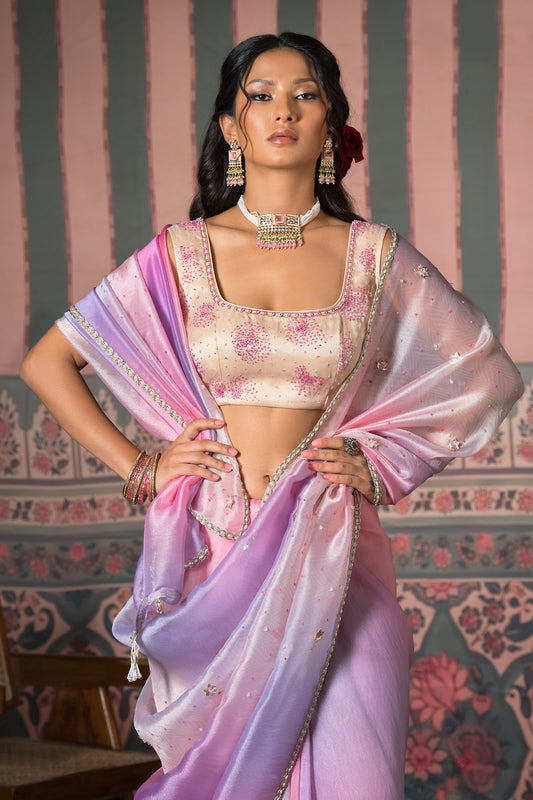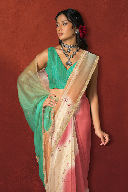 Coral Red Hand Embroidered Silk Organza Saree