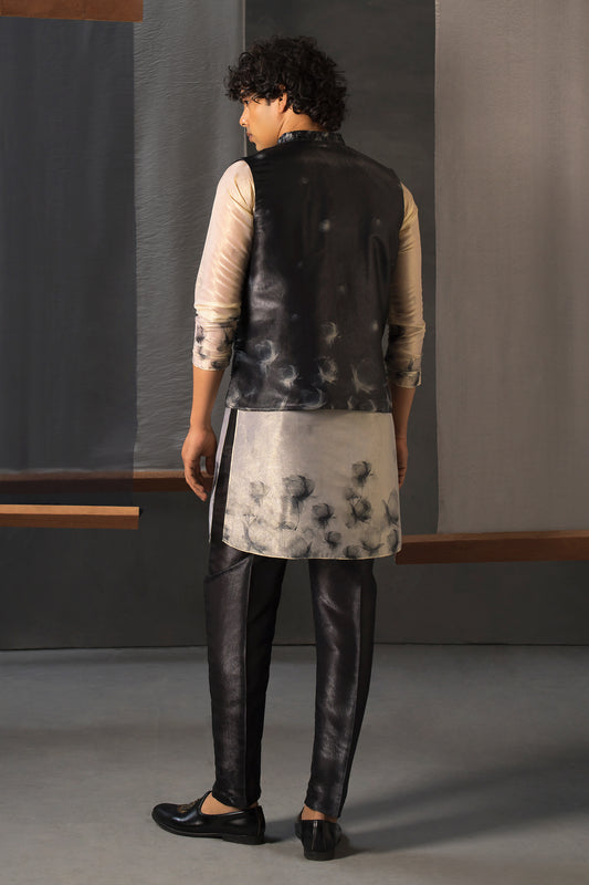 • Men’s Black Printed Kurta Pant Set with Waistcoat