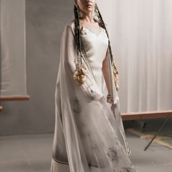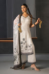 Monochrome Designer Strap Suit with Dupatta Ash White - Floral Shadow Print