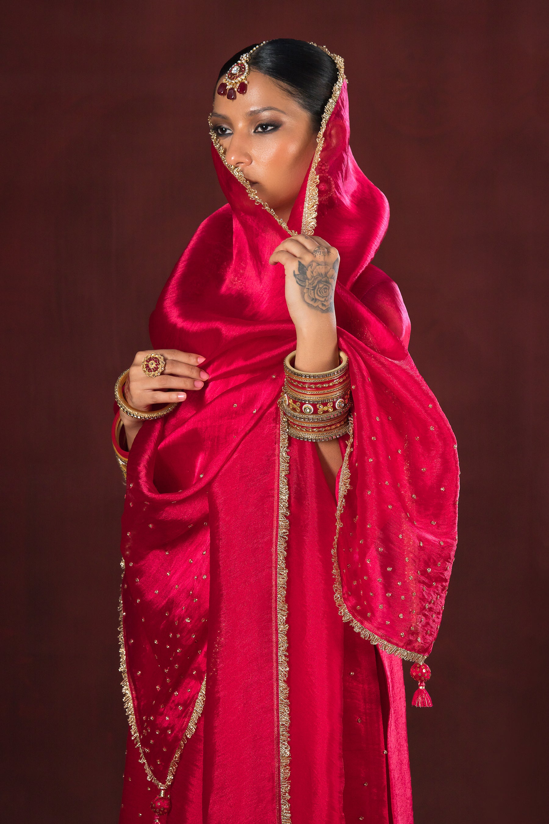 • Fabric (Dupatta): Silver Organza