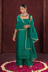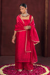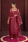 This elegant printed suit exudes a perfect blend of tradition and modern sophistication, making it ideal for festive occasions, ethnic celebrations, and party wear. The outfit features a beautifully designed heavy yoke adorned with intricate handwork, adding a rich and luxurious touch to the ensemble. The split neckline detail enhances its contemporary appeal while maintaining a graceful ethnic charm.