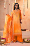 A radiant blend of tradition and modern artistry, this hand-embroidered Bandhani ombre suit set captures the spirit of festive elegance. The vibrant ombre hue transitioning from pink to magenta enhances the intricate Bandhani-inspired motifs and delicate hand embroidery that adorn the neckline and borders. Paired with a coordinated ombre dupatta featuring embroidered detailing, this ensemble is perfect for festive celebrations, wedding functions, and cultural gatherings.